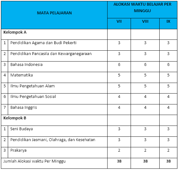 STRUKTUR KURIKULUM SMP KAPIN JAKARTA (Kurikulum 2013)